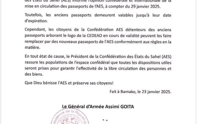 مالي تعلن عن البدء بالعمل بجوازات دول كونفدرالية دول الساحل