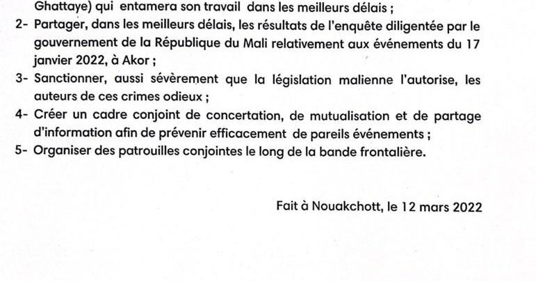 أبرز نقاط الاتفاق بين الوفدين الموريتاني و المالي……تنظيم دوريات مشتركة وتبادل المعلومات…