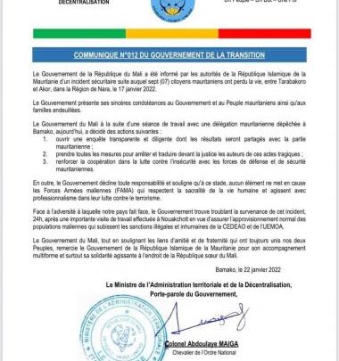 مالي تعتذر رسميا للشعب الموريتاني وتتعهد بالتحقيق في الحادث/بيان