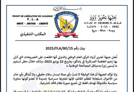 جبهة تحرير أزواد : وثيقة المصالحة الوطنية بالمناورة الجديدة