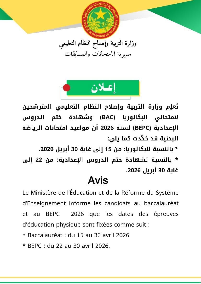 وزارة التربية تعلن عن مواعيد امتحان الرياضة للمسابقات الوطنية