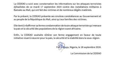 منظمة “سيدياو” تعزي الحكومة والشعب المالي وأسر الضحايا إثر هجمات الأمس