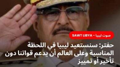 خليفة حفتر: سنستعيد ليبيا في اللحظة المناسبة وعلى العالم أن يدعم قواتنا دون تأخير أو تمييز