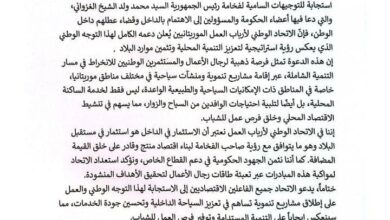رئيس الإتحاد الوطني لأرباب العمل يصدر البيان التالي