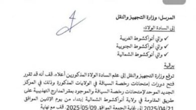 وزارة النقل تعلن فتح دورات امتحانات رخص سياقة في ولايات انواكشوط الثلاثة