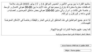 موريتانيا : الهيئة الوطنية للأرصاد الجوية، تدعو لأخذ الحيطة والحذر.