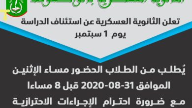 الثانوية العسكرية تحدد موعد امتحان الفصل الثانى
