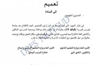تعميم من وزارة التعليم يطالب بجرد أسماء المدرسين العالقين /وثيقة