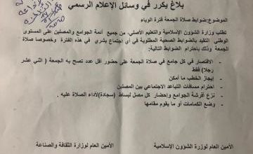 وزارة الشؤون الاسلامية : صلاة الجمعة بشروط “وثيقة”