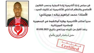 أكاديمية إرادة الدولية للتدريب والأستشارات تختار الشاب الموريتاني محمد ابراهيم ببانه مديرا لمكتبها بنواكشوط صورة