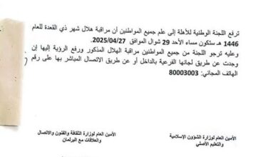 لجنة الأهلة تدعو لمراقبة هلال ذي القعدة ابتداء من مساء بعد الأحد.