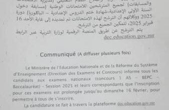 وزارة التربية تعلن تمديد الترشح للامتحانات الوطنية