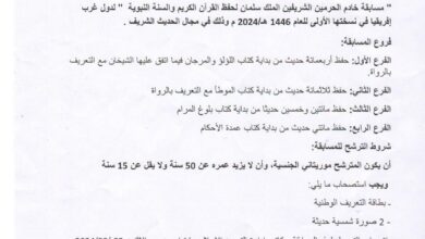 موريتانيا : الإعلان عن مسابقة غرب إفريقية لحفظ القرآن والحديث
