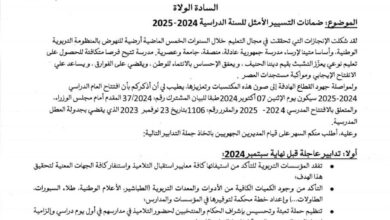وزارة التربية : تعميم موجه إلى الولاة من أجل سير أمثل للسنة الدراسية 2024 _ 2025م
