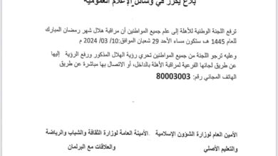 اللجنة الوطنية للأهلة تدعو إلى تحري رؤية هلال شهر رمضان المبارك مساء الأحد