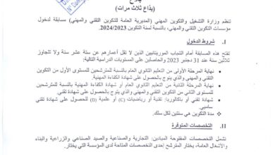 وزارة التشغيل تعلن عن منح للتكوين المهني المتوسط بالجزائر