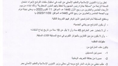 وزارة الشؤون الاسلامية تعلن عن مسابقة / وثيقة