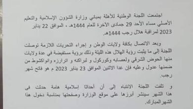 لجنة مراقبة الأهلة تعلن : غدا فاتح رجب /وثيقة