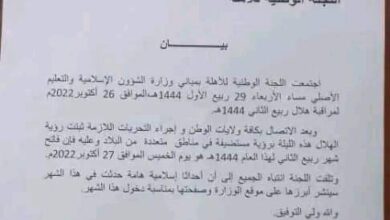 بيان من لجنة مراقبة الأهلة حول شهر ربيع الثاني 1444هجري