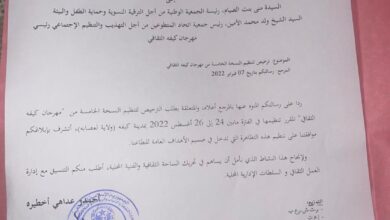 وزارة الثقافة : ترخيص “مهرجان كيفه للثقافة” النسخة الخامسة / وثيقة
