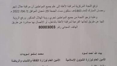 بلاغ من اللجنة المركزية لمراقبة الأهلة بخصوص رمضان/وثيقة