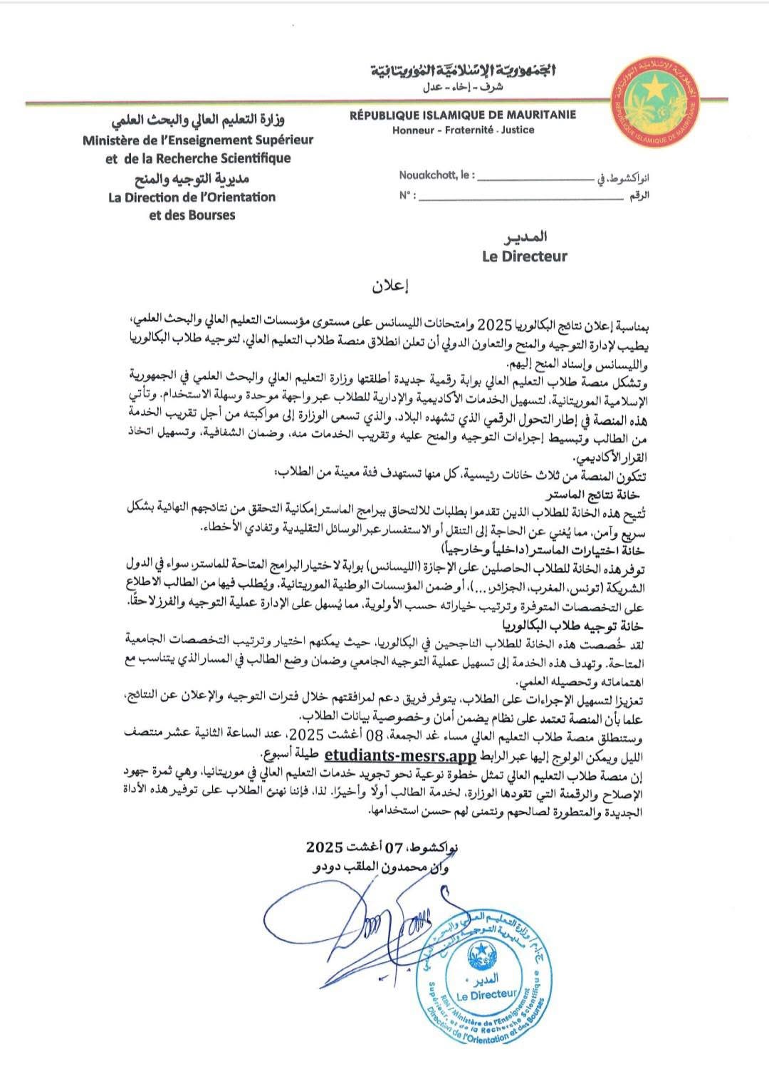 إعلان : وزارة التعليم العالي تعلن عن فتح منصة التوجيه