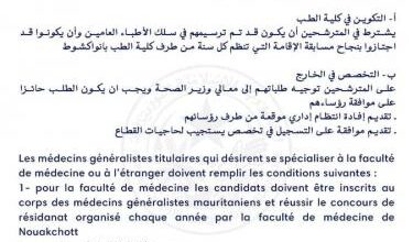 الإعلان عن شروط قبول الأطباء العاملين للتخصص بكلية الطب أو في الخارج/ وثيقة