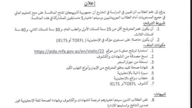 الإعلان عن “منح دراسية فى أذربيجان” لطلاب موريتانيين /وثيقة
