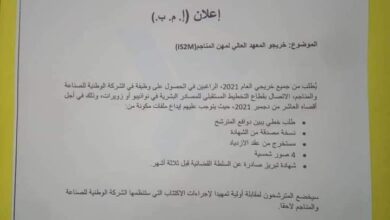 الاعلان عن نتائج مسابقة دخول مدارس التعليم الفني والمهني BT/لوائح