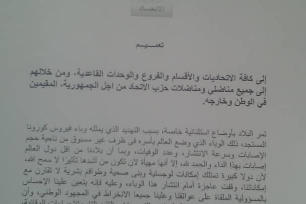 تعميم من قيادة الحزب إلى كافة هيئاته في الداخل والخارج ( وثيقة)