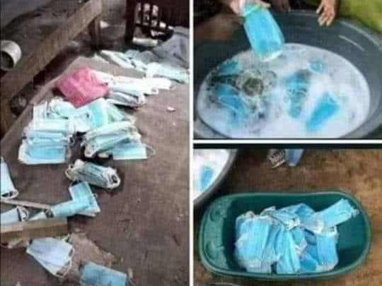 تداول نشطاء صور لأشخاص يعيدون استعمال الكمامات حيث يغسلونها و يرجعون للشارع لبيعها