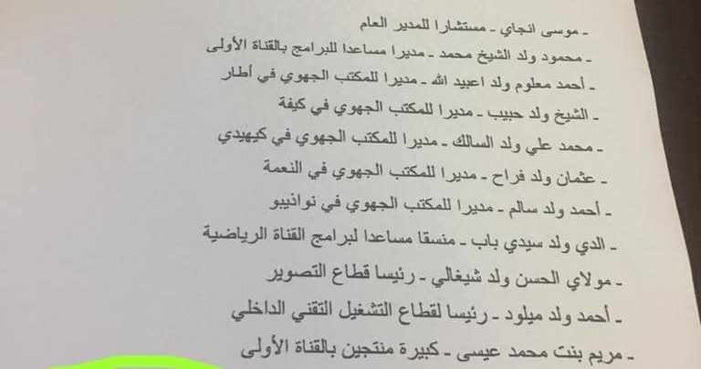 اصدر المدير العام لقناة الموريتانية اليوم مذكرة تم بموجنها تعيين عدة اشخاص