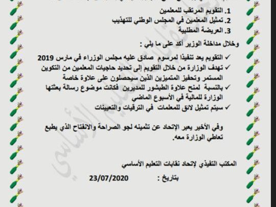 بيان من اتحاد نقابات التعليم الاساسي بعد لقاء الوزير اليوم / وثيقة