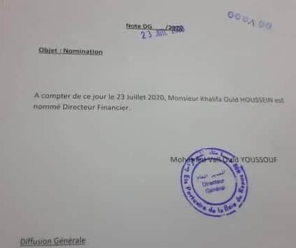 (*) خليفة ولد حسين مديرا للإدارة المالية