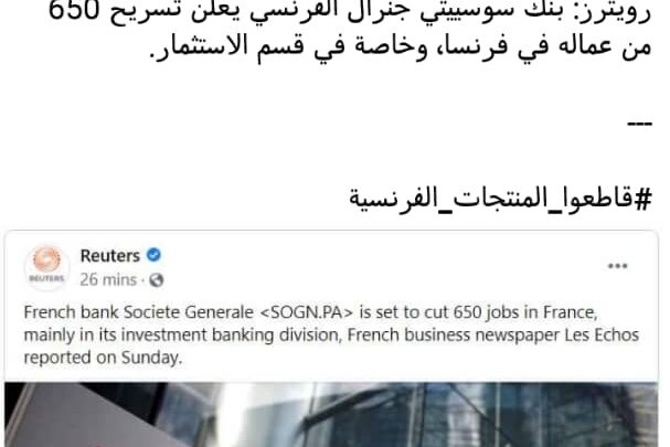 بنك سوسيتي جنرال يعلن تسريح 650 من عماله فى فرنسا