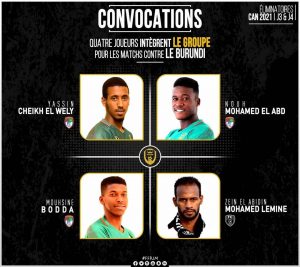 اللاعبون الذين استدعاؤهم للإلتحاق بالمنتخب الوطني هم : ياسين الشيخ الولي، نوح محمد العبد، محسن بده، من أفسي نواذيبو، وزين العابدين بارداس من أفسي تفرغ زينه.