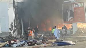 شب حريق قبل لحظات في محل تجاري في أحد أحياء دار النعيم قرب بقالة الدعاة، وقد امتدت السنة النار التي التهمت المحل لتطال أكواخا وأعرشة بالقرب من المحل.