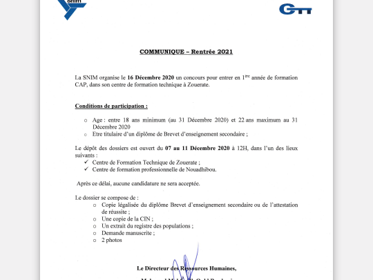أسنيم تعلن عن مسابقة جديدة للشباب الموريتاني / ملف ….. وثيقة