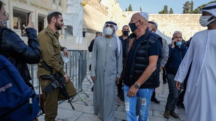 وعقب وصوله إلى دولة الاحتلال، قام الجاسم بزيارة لحائط البراق المحتل، الذي سيطر عليه الاحتلال عام 1967 وحوّله إلى مكان ديني لليهود.