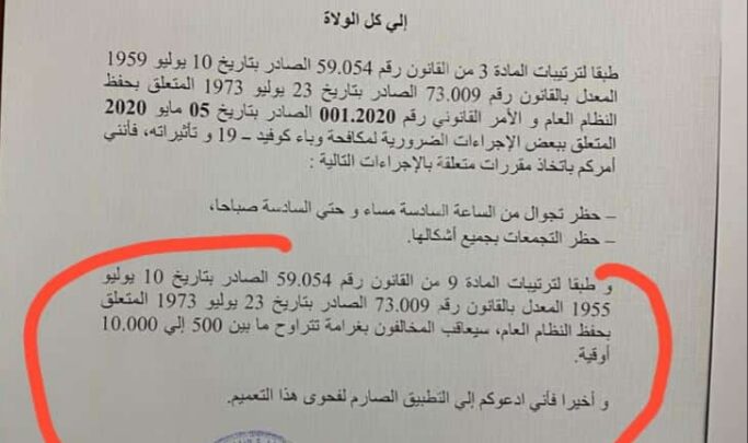 أصدر وزير الداخلية تعميما الى الولاة يقضى بمعاقبة المخالفين لحظر التجوال و تتراوح الغرامة مابين 500 الى 10000 أوقية سعيا منه الى الصرامة فى تطبيق الاجراءات