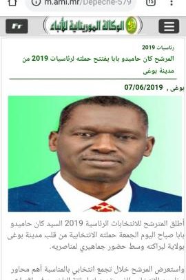 كما من العادة أن تقوم الوسائل الاعلامية العمومية بتغطية أنشطة المرشحين للرئاسيات خلال الحملة الانتخيبة الحالية ومنحهم حصصا متساوية عادلة، إلا أن الوكالة الموريتانية وفي سابقة من نوعها أقدمت مع بداية انطلاقة الحملة الانتخابية على خطوة في عكس اتجاه الحرية والديمقراطية، حيث واكبت بعض المترشحين بصور حديثة ومن حفل الافتتاح، بينما لم يرفقوا خبر المرشح كان حامديو بابا بصورة، وجاؤوا له بصورة قديمة من الأرشيف،وأعطت الأولوية لبقية المرشحين الخمسة، الأمر الذي أثار حفيظة بعض المتابعين للساحة الإعلامية، مشيرين إلى أنه أمر لا يتماشى مع المصداقية والأمانة.