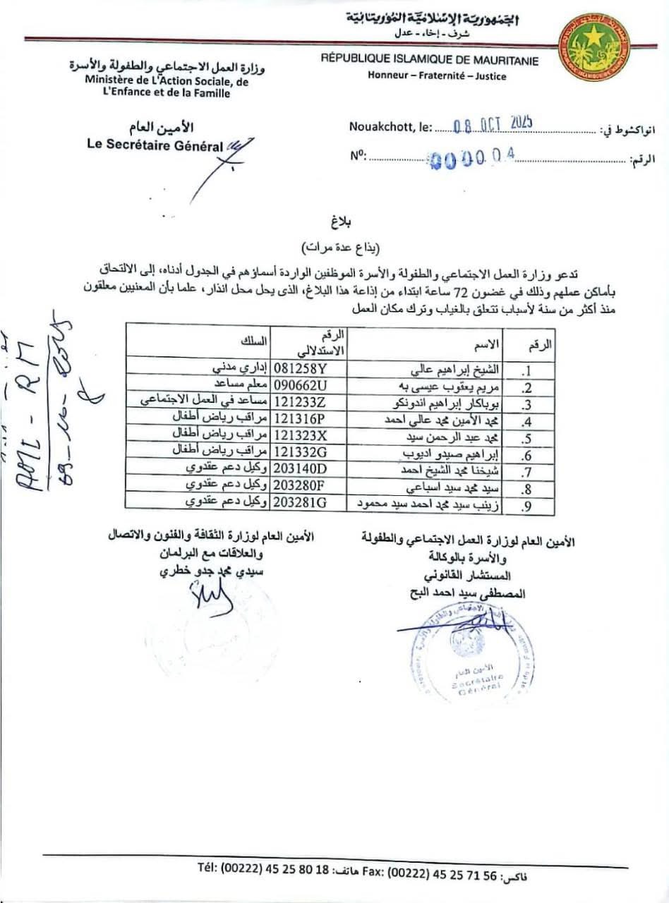 أعلن والي ولاية نواكشوط الشمالية، سي ممادو كوجيل، عن فتح رقم هاتفي أخضر (80001503) يتيح لسكان مقاطعات الولاية الثلاث (تيارت، دار النعيم وتوجونين) الاتصال عبره للإبلاغ عن أي مشكل أو تهديد أمني؛ مبرزا أن توفير الرقم المجاني المذكور يندرج ضمن العمل بتعليمات صادرة عن رئيس الجمهورية محمد ولد الشيخ الغزواني من أجل تأمين حياة المواطنين وممتلكاتهم.