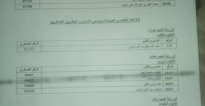 ترقية الطبيب محمد بوي ولد عالي الى رتبة مقدم /وثيقة