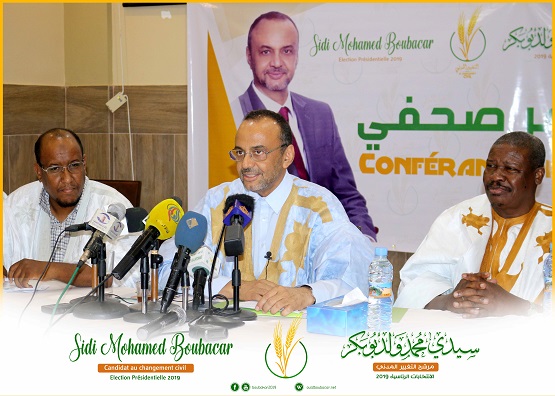 نظم مرشح التغيير المدني الرئيس سيدي محمد ولد بوبكر مساء الأربعاء مؤتمرا صحفيا تحدث في مستهله عن المرحلة الأولى من جولته في الداخل والتي شملت الولايات الشرقية، ثم قدم المترشح عرضا عن برنامجه الانتخابي الذي أكد أنه يتسم بالطموح والواقعية.