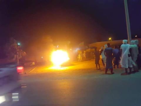 وتداول نشطاء على مواقع التواصل الاجتماعي صور السيارة وقد أتت عليها النيران بشكل كلي.