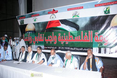 احتضنت دار الشباب القديمة مساء اليوم الأربعاء في نواكشوط تظاهرة لدعم وتأييد القضية الفلسطينية منظمة من طرف المركزيات النقابية مؤازرة ودعما للشعب والمقاومة الفلسطينيين ونصرة للأقصى وإيمانا بالقضية الفلسطينية العادلة .