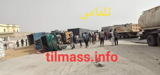 عاجل / سقوط حاوية على سيارة بداخلها شخصين بانواكشوط …. صورة