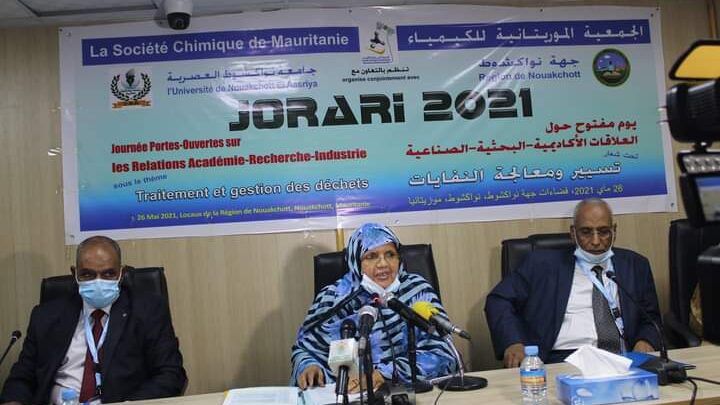 اشرفت رئيسة جهة نواكشوط السيدة فاطمة بنت عبد المالك صباح اليوم الأربعاء 26 مايو 2021، على افتتاح اليوم المفتوح المنظم من طرف الجمعية الموريتانية للكيمياء بالتعاون مع جهة نواكشوط وجامعة نواكشوط العصرية، حول العلاقات الأكاديمية – البحثية – الصناعية، وذلك تحت شعار تسيير ومعالجة النفايات.
