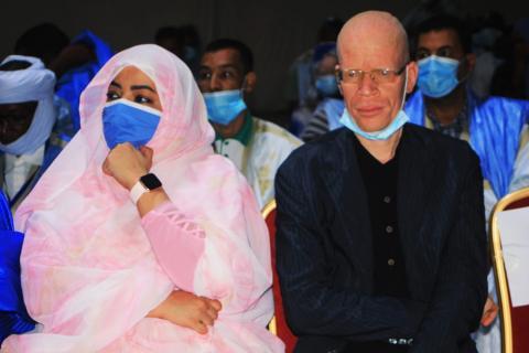 حضرت نائب رئيسة جهة نواكشوط السيدة زينب بنت الشيخ أحمد، صباح اليوم الأحد 13 يونيو 2021 بفندق أزلاي، الفعاليات الاحتفالية باليوم العالمي للتوعية بالمهق، المنظم من طرف الجمعية الموريتانية لدعم ودمج الأشخاص المصابين بالمهق وبرعاية من جهة نواكشوط، تحت شعار “أقوياء أمام الجميع”.