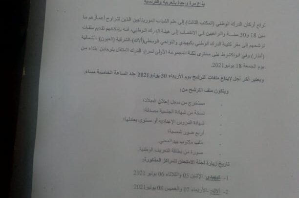 ابتداءا من يوم الجمعة 18 يونيو 2021 ، ويعتبر آخر اجال لاداع الملفات هو يوم الأربعاء 30 يونيو 2021 عند الساعة الخامسة مساء
